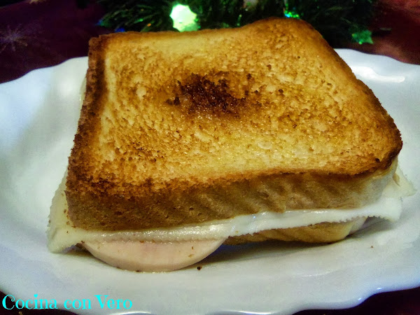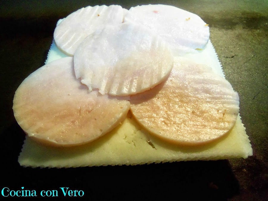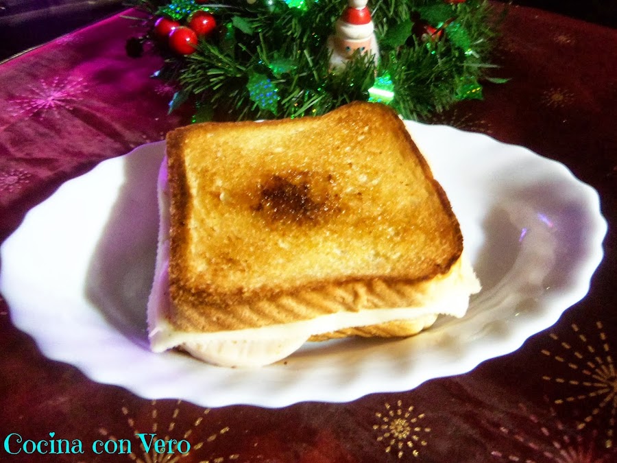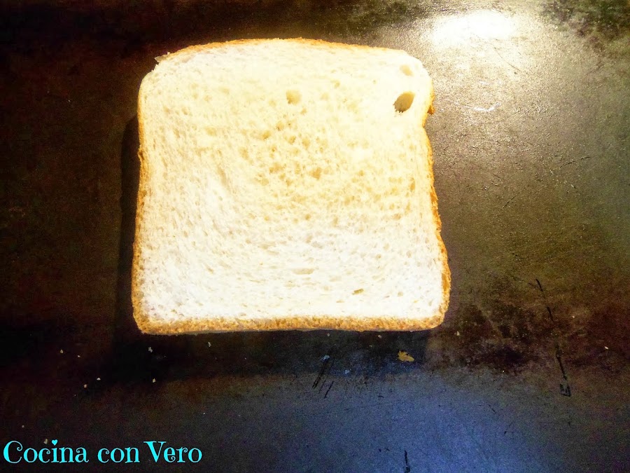 2/ Untamos la otra rebanada con aceite que se va a poner por encima del queso y del jamón y le vamos dando la vuelta con la ayuda de una espátula hasta que se haga el sandwich.