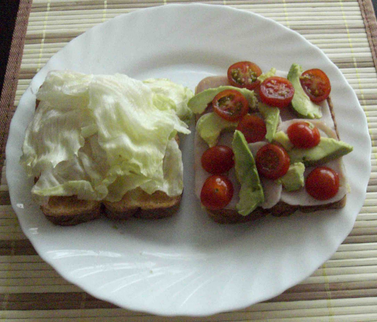 Para montar el sandwich, untar una de las mitades del pan de molde con mayonesa, cubrir con la lechuga, el queso, el pavo, los trozos de tomate y los de aguacate. Tapar con la otra rebanada de pan.