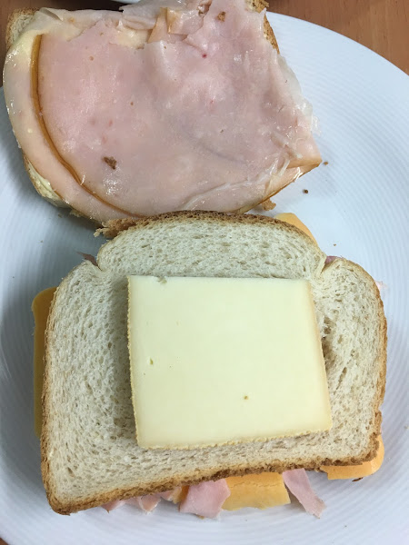 Se prepara cada sandwich untando dos rebanadas con la mayonesa. En una capa se pone el jamón de york con el queso cheddar, se cierra con la otra y se pone el pavo con el trozo de raclette (es un queso blandito que funde de maravilla, podéis sustituirlo por queso de sandwich). Se cierra con la otra rebanada untada.