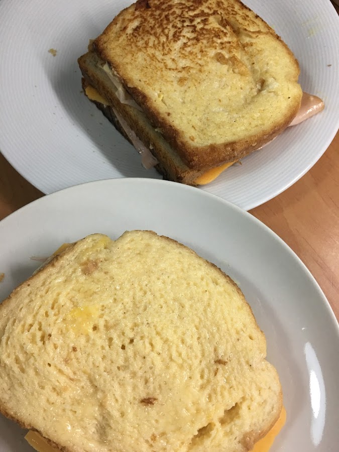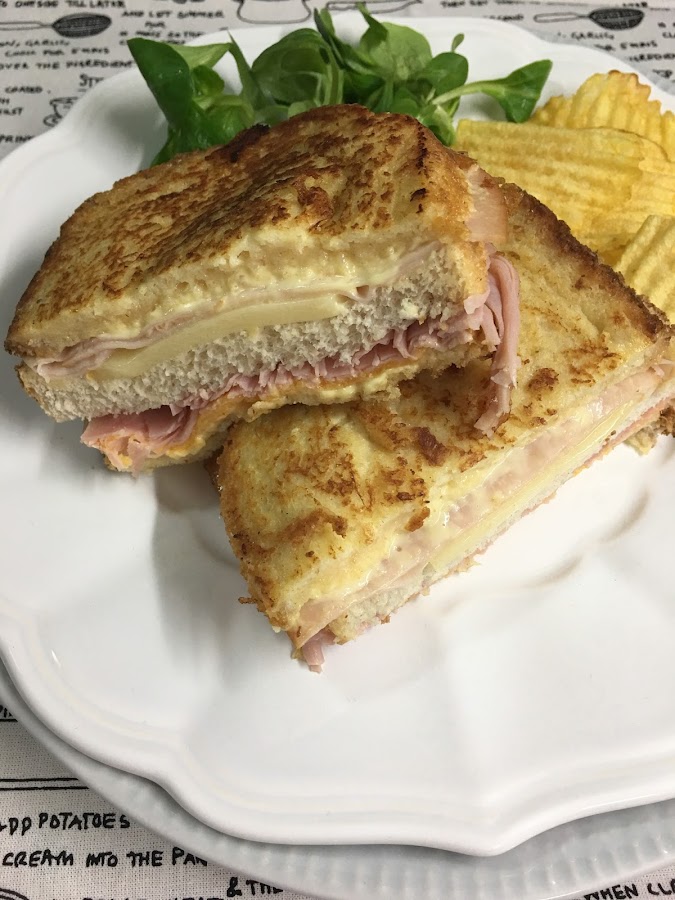 Me encanta el clásico sandwich de jamón y queso o bikini, y lo nuevo de éste es que es como nuestra española torrija empapada en leche, así de jugosa. Yo he hecho la recreación con los quesos que tenía en cas, pero podéis usar queso para sandwich u otro que os guste.