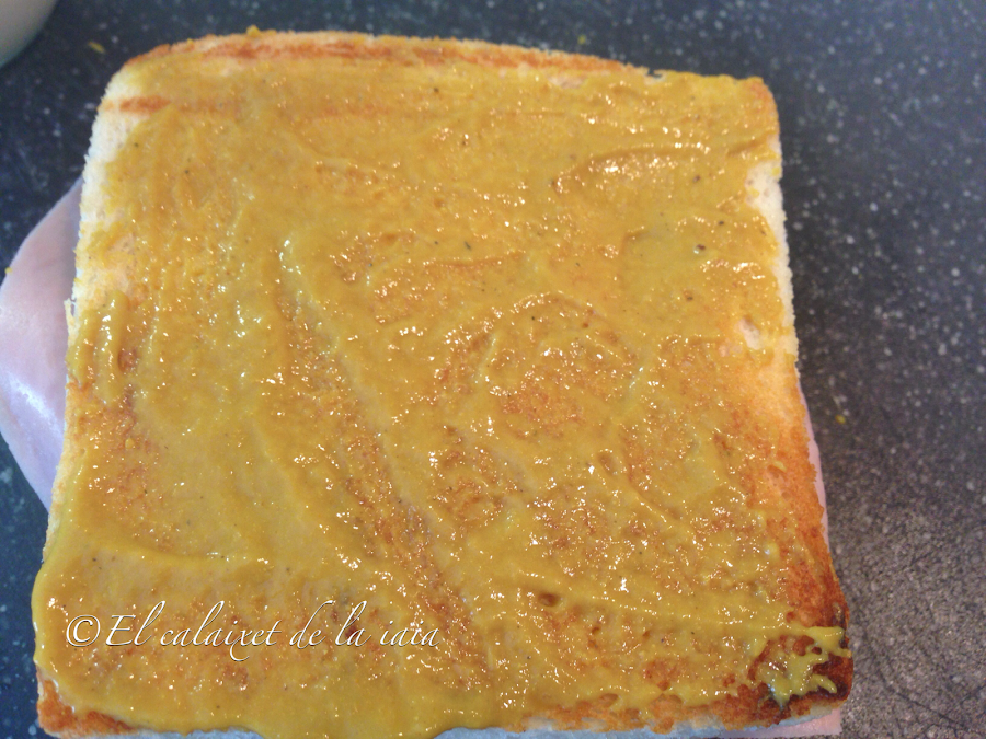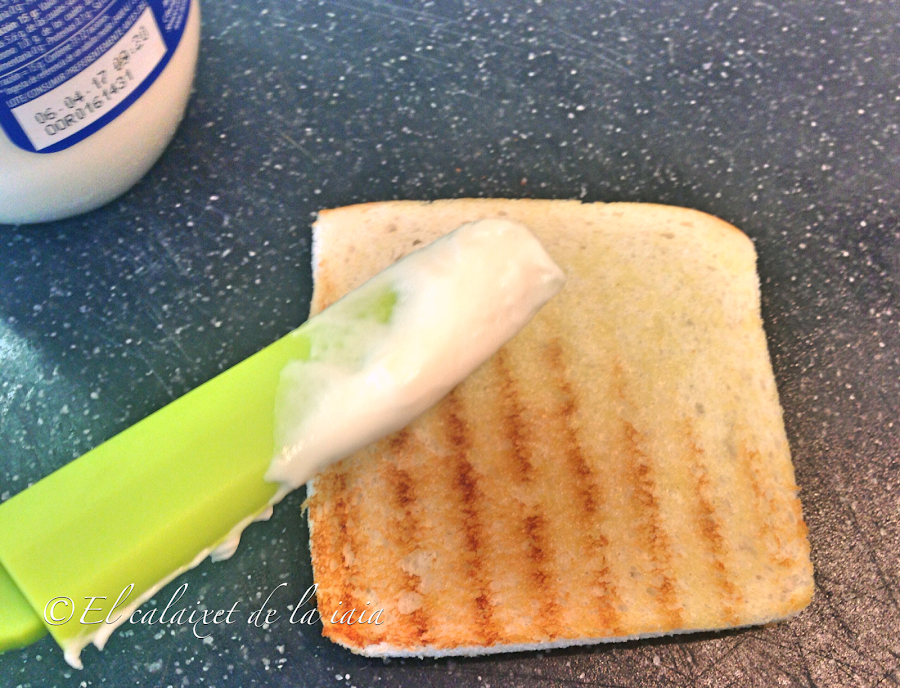 finalizaremos con una tostada untada con mayonesa, por la parte inferior