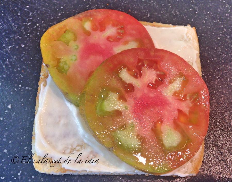 colocaremos encima las rodajas de tomate y un pelín de sal