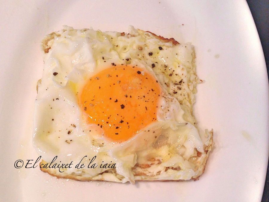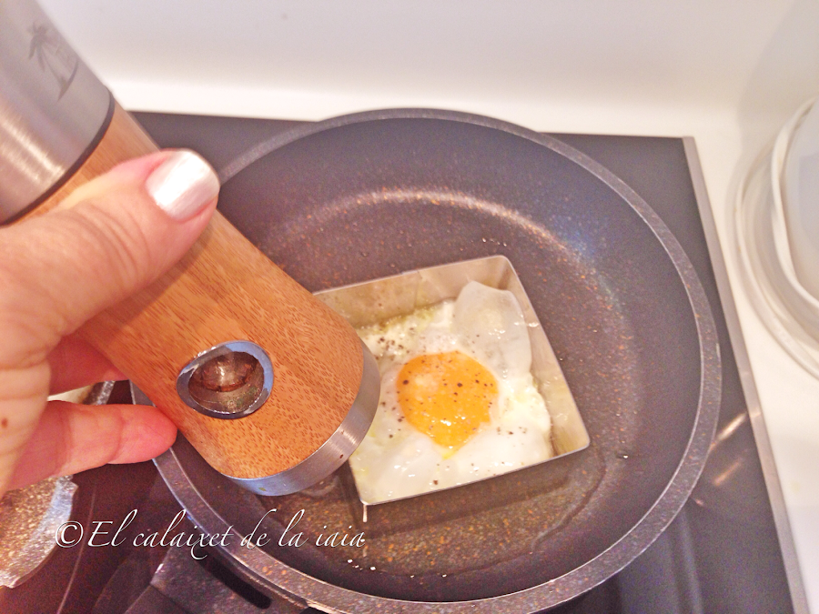 dejaremos la yema líquida por dentro y la clara cuajada, incluso con puntilla, si es posible y salpimentaremos