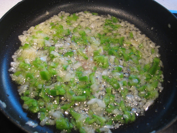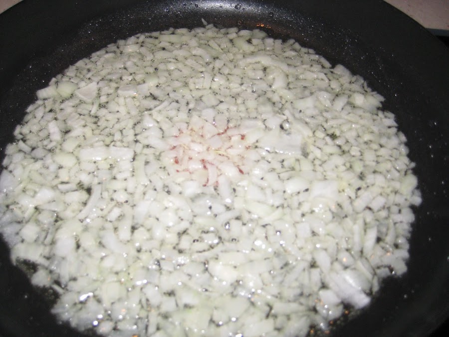 Pelar y picar media cebolla, ponerla a pochar en una sartén con aceite de oliva.
