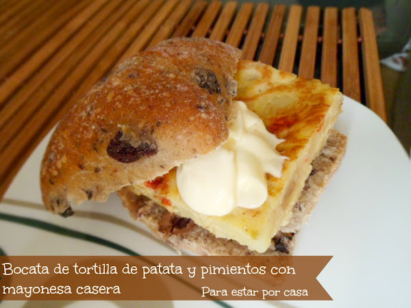 Menuda combinación, tortilla , pimientos y mayonesa... no veas como tiene que estar!! lo puedes ver en el blog Para estar por casa.