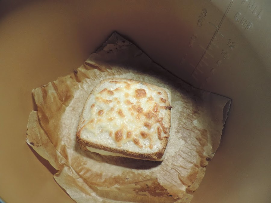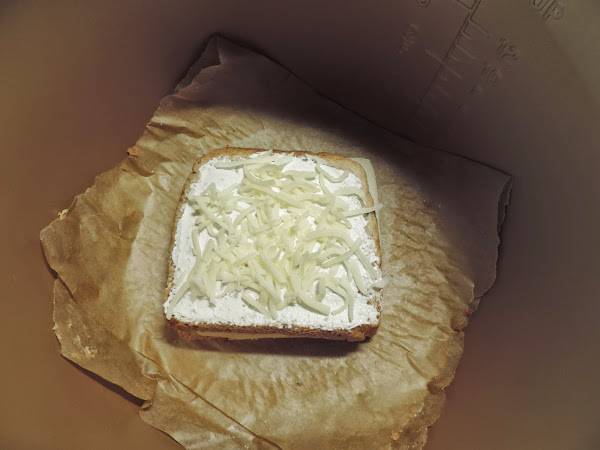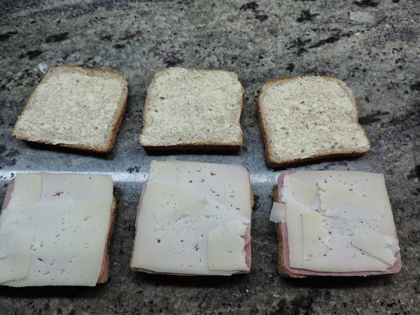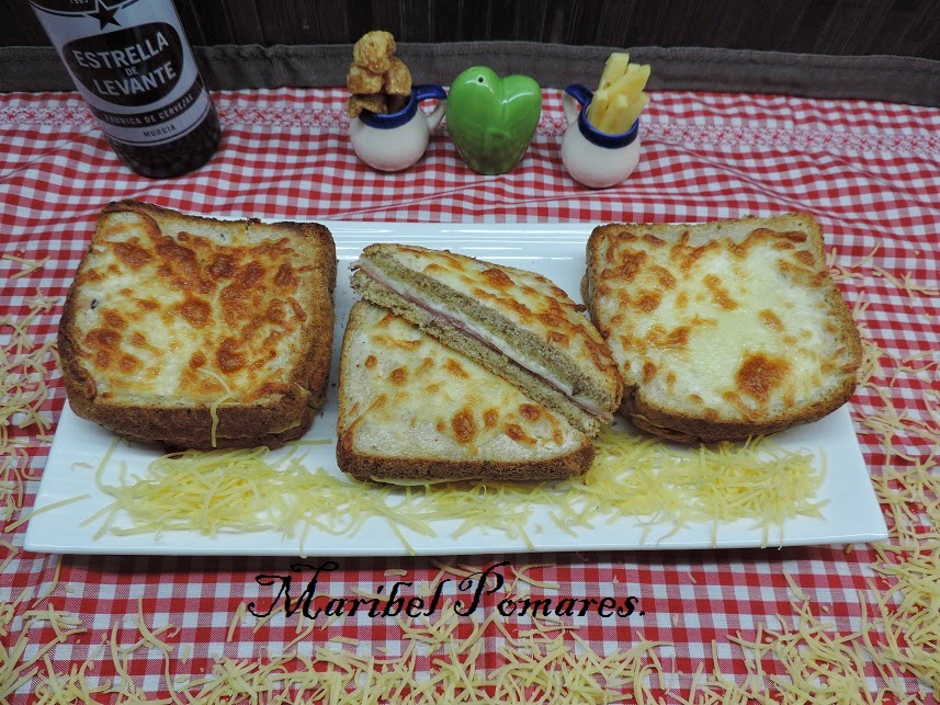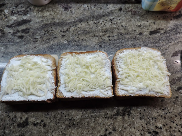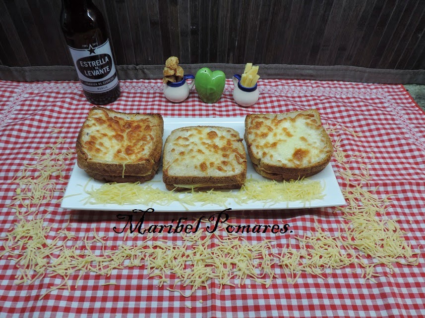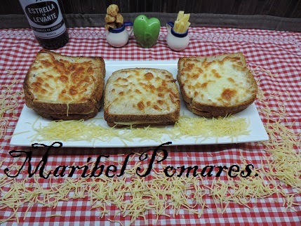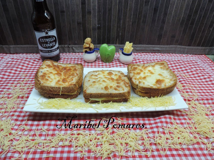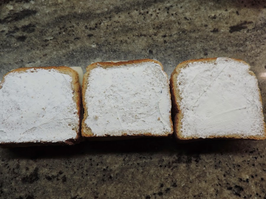 Una vez tapados los sándwiches, les untamos crema de nata (crema de leche) en la loncha de pan de arriba.
