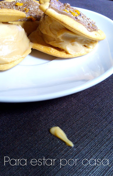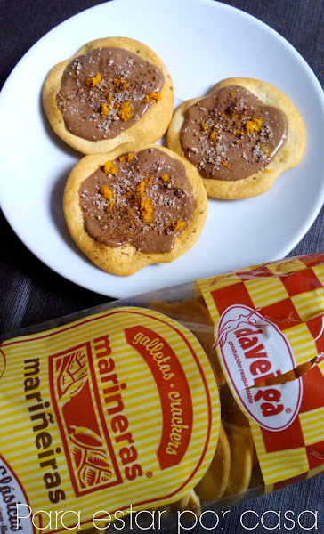 Las galletas mariñeiras de Daveiga, que están siendo la estrella de las cenas de tapeo en casa, me parecieron perfectas para completar este helado. Eso sí, al ser saladas, tenía que darles un toque dulce para equilibrar lo sabores del conjunto. Así que se me ocurrió bañarlas con chocolate y añadirles otros matices de naranja, canela, azúcar y cacahuete.