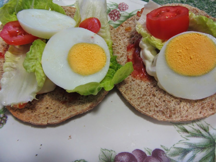 Ahora colocaremos la lechuga, bien limpia Y MUY BIEN SECADA, los tomates (también limpios y secos), y los huevos.