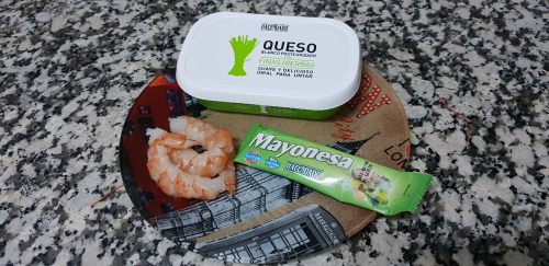 1-Sándwiches de queso con gambón. Mezcla el queso crema con la mayonesa hasta obtener una mezcla homogénea. Pela y cuece los gambones en agua con sal durante un minuto. Pica los gambones en trocitos pequeños y añade a la mezcla anterior.
