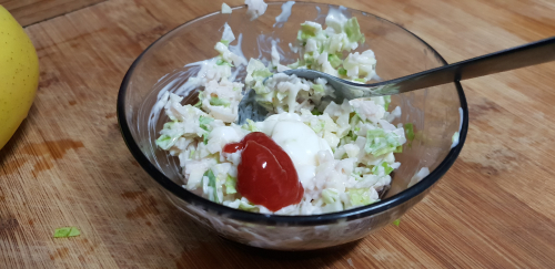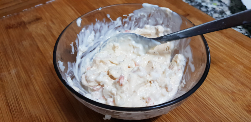 Añade la mayonesa y el kétchup y mezcla muy bien.