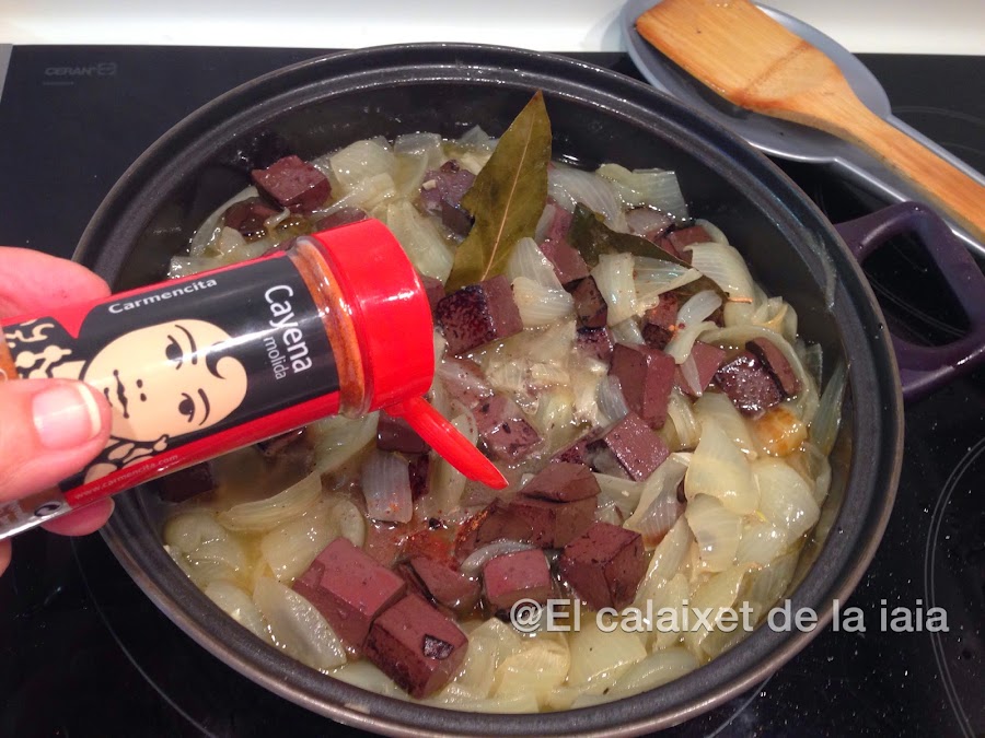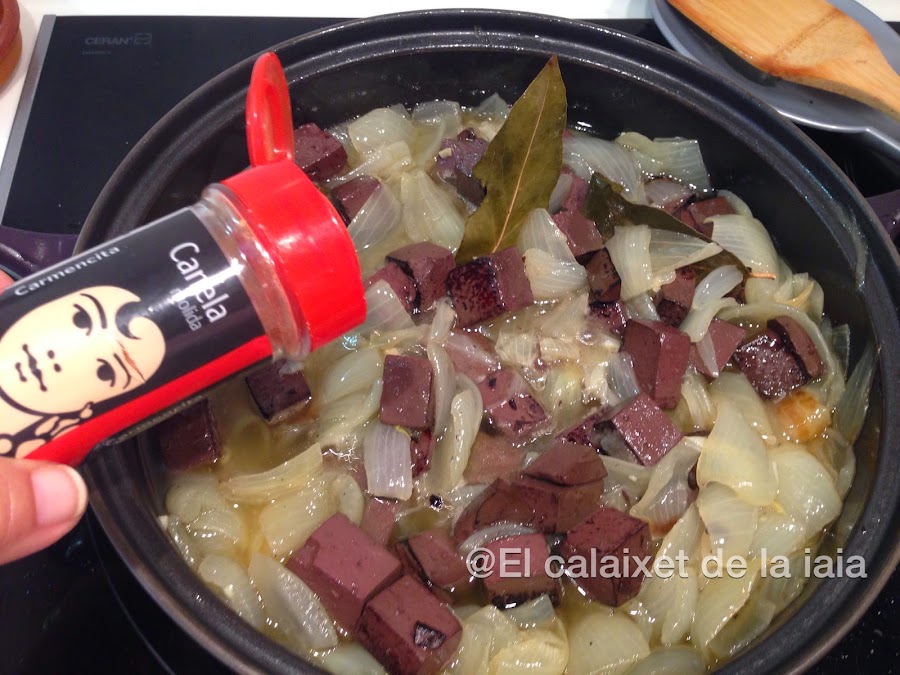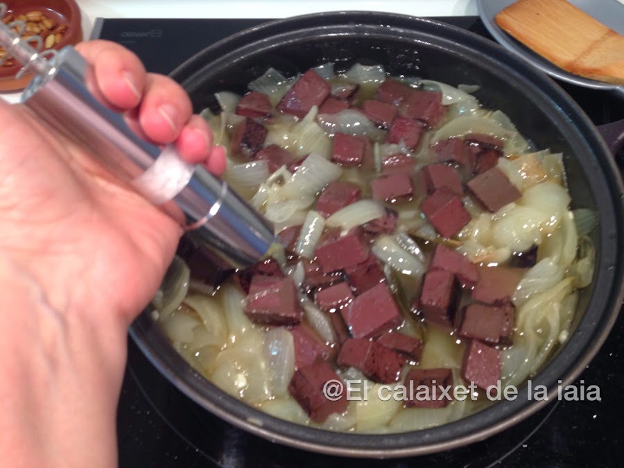 Cuando tengamos la cebolla en su punto incorporamos la sangre reservada