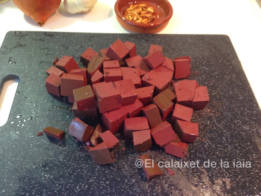 Mi madre y la iaia compraban siempre la sangre en una parada del Mercat del Grau, justo al lado de donde tenían su puesto y casi siempre era sangre de cerdo, pero ahora ya es muy difícil de encontrar porque se utiliza para hacer morcillas, si esas morcillas tan ricas que comemos habitualmente.... también se hacen con sangre ¿a que ya no os espanta?