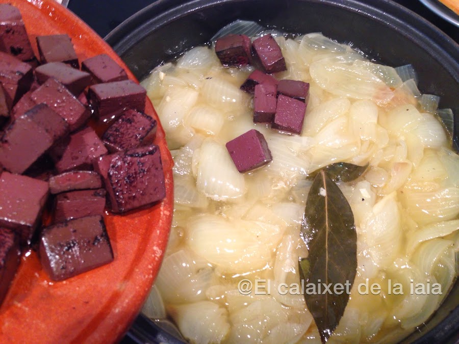 Este es un planto que o encanta o se detesta, no hay término medio pero es muy típico en Valencia en los bares de tapas tradicionales, la sang amb ceba, junto a las clóchinas, una bona caragolá, unes tellines, cacau i tramussos, esgarraet amb moixama. Además como la sangre es muy barata podéis probarla para saber si os gusta o no.