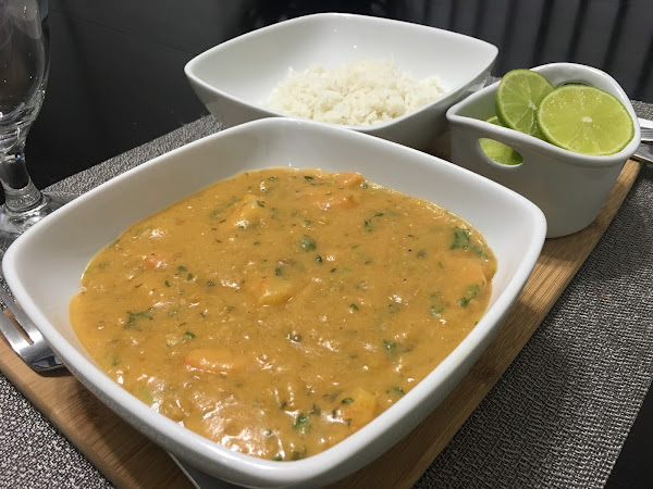 En una olla mediana sancochamos los camarones en 4 tzs de agua con sal, en cuanto cambien de color los retiramos del fuego y separamos. Aparte licuamos los verdes en las dos tazas de agua que nos sobraron y reservamos, en una olla grande ponemos a calentar el aceite y refreímos la cebolla y el pimiento, luego le agregamos el sobre de sazón con achiote, los verdes licuados, la mitad del culantro y la sazón completa, dejamos que hierva y le agregamos sin dejar de mover el agua en donde cocinamos los camarones, dejamos que se cocine y cuando ya haya espesado le agregamos la mantequilla de maní, movemos bien para que se integre en la preparación, por ultimo agregamos los camarones y el resto del culantro, rectificamos la sazón y retiramos del fuego, servimos con arrocino blanco y limón.
