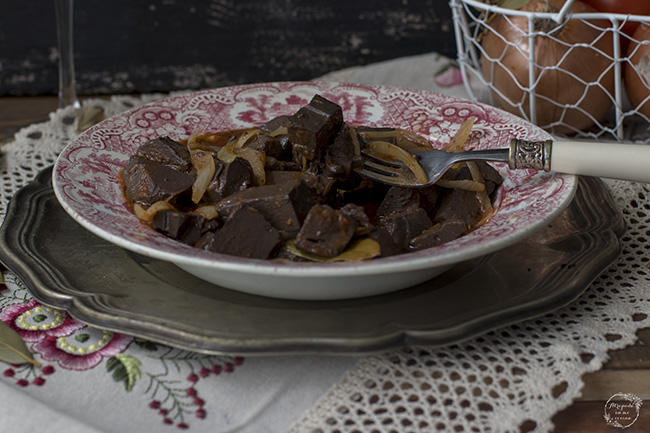 Los platos de casquería no son del agrado de todo el mundo, o gustan o no gustan. Yo de pequeña nunca los probaba, pero con el tiempo y el buen olor que desprendía la cocina de mi madre cuando preparaba esta sangre encebollada me atreví a probarla. Y la verdad es que a mi me parece un plato estupendo, rico, rico y además es un plato típico de muchos lugares de España donde se sirve en sus restaurantes como el plato estrella.