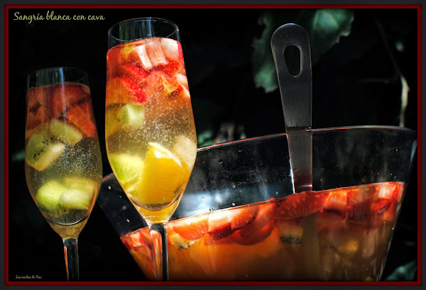 Hola a todos, ayer aprovechando el inicio de la primavera y con el día tan maravilloso que tuvimos, invité casa un grupo de amigos y mi queridísima sobrina Andreína nos hizo esta refrescante sangría en base a un cava bien frío y frutas, me pareció tan vistosa y rica que de inmediato la he publicado en el blog... Gracias Andre!!!!