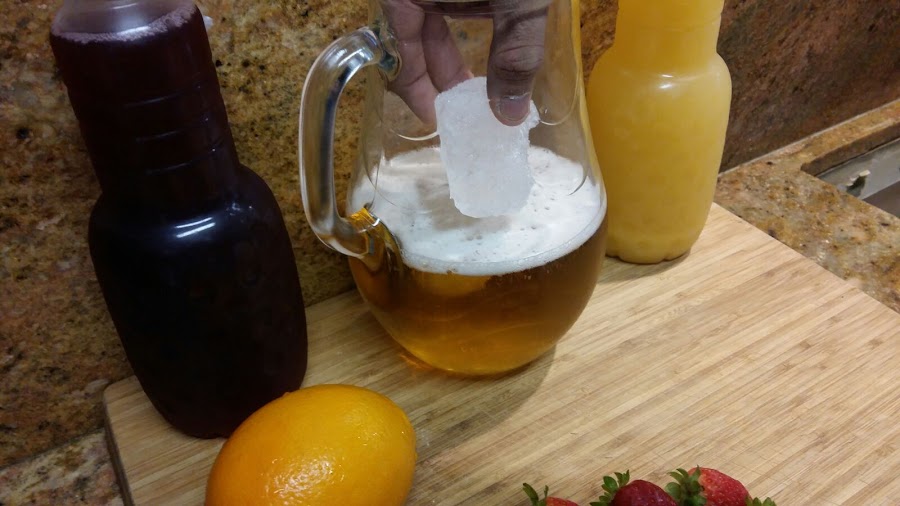 Empezamos poniendo las cervezas en una jarra con unos cubitos de hielo.