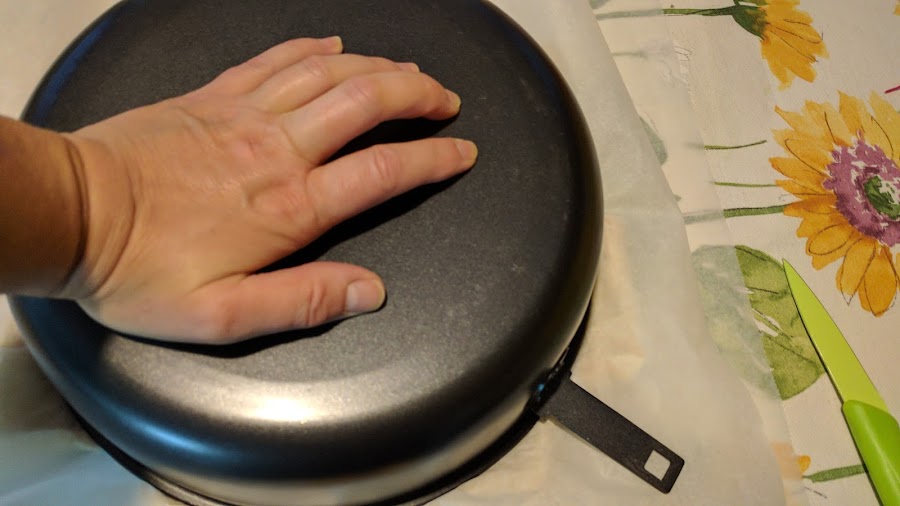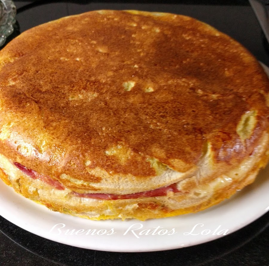 Para desmoldar necesitas una fuente muy grande y dando la vuelta se desliza perfectamente. La parte que se ve es la que estaba en la base. Queda perfecto. Se puede hacer en una sartén alta antiadherente cuidando mucho la temperatura de la cocina. En este caso hay que dar la vuelta y dejar que se cocine por el otro lado.