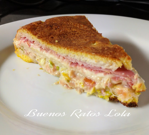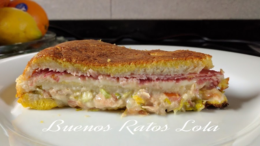 Mi relleno, un piso jamón York natural y queso y el otro atún, lechuga y tomate muy picadito con unas cucharadas de mayonesa. Como vamos a calentar prefiero poner mayonesa de bote.