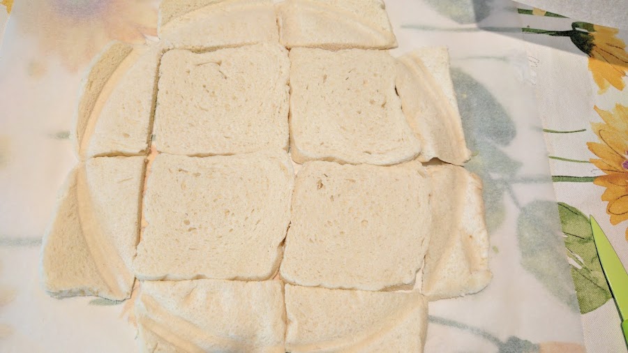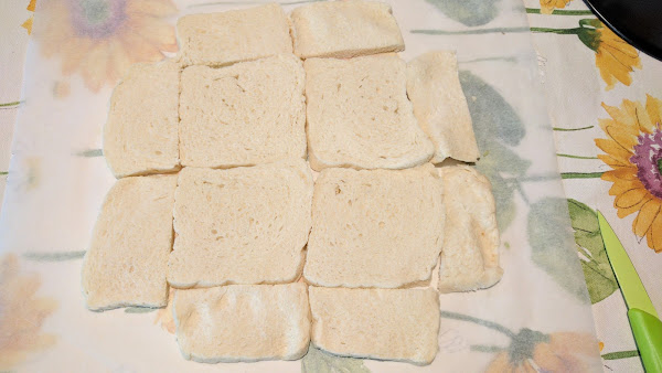 Utiliza un pan de molde sin corteza. Yo he gastado un paquete entero, pero irá en función del tamaño de rebanada.