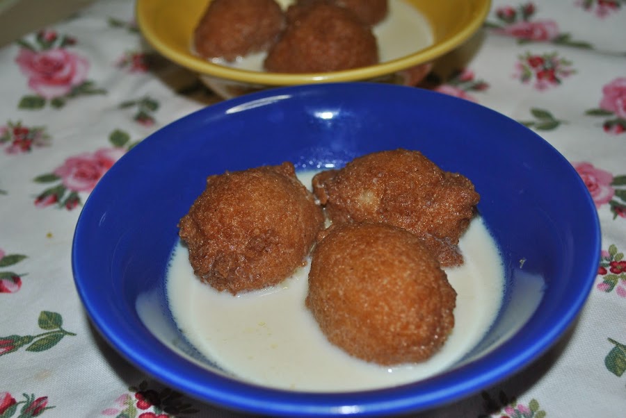 Una vez pasados los 30 min. poner una sarten a calentar y con dos cucharas vamos echando la masa a freír formando bolitas una vez fritas se ponen a escurrin en papel.