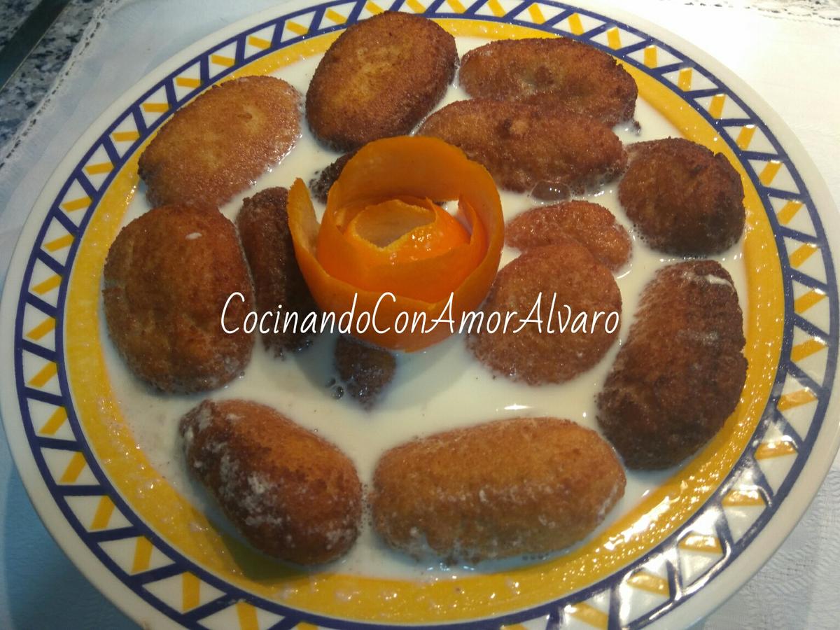 Luego es freírlos dándoles forma ovalada, y remojarlos en la leche aromatizada.