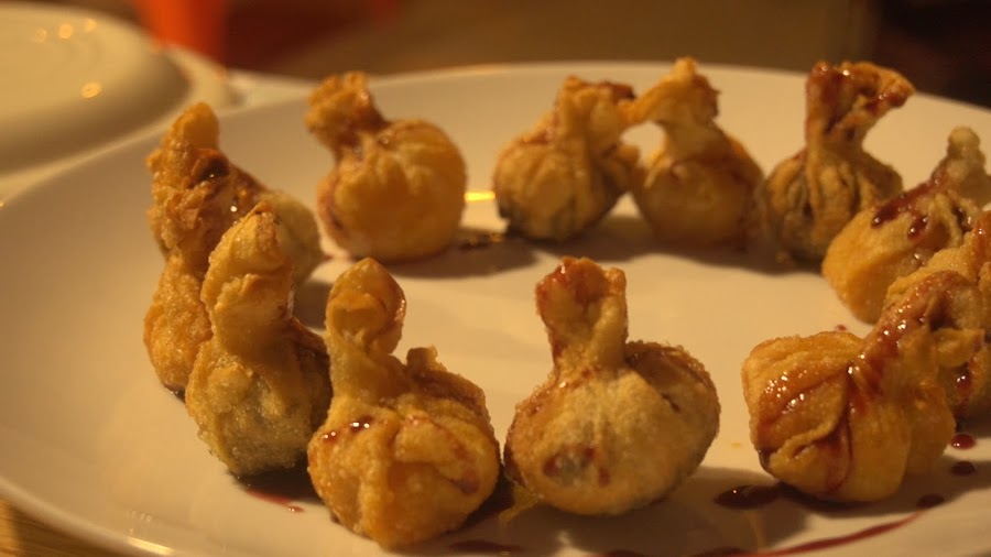 Freír en abundante aceite de girasol, cuando la masa de los saquitos este dorada sacar de la sartén y reservar en un plato con papel.