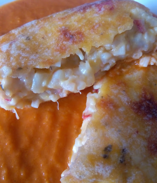 Finalmente mientras se hornean podemos aprovechar para hacer la salsa que los acompaña, en una sartén pequeña añadimos media cebolla picada y la pochamos, añadimos los pimientos y un chorro de vino blanco generoso, dejamos que se evapore el alcohol y espese la salsa y lo pasamos por la licuadora.
