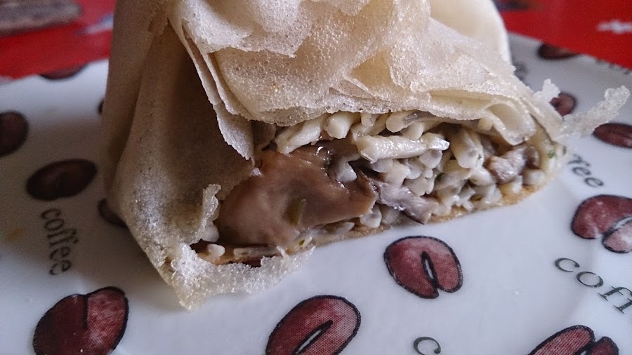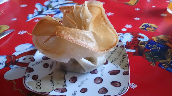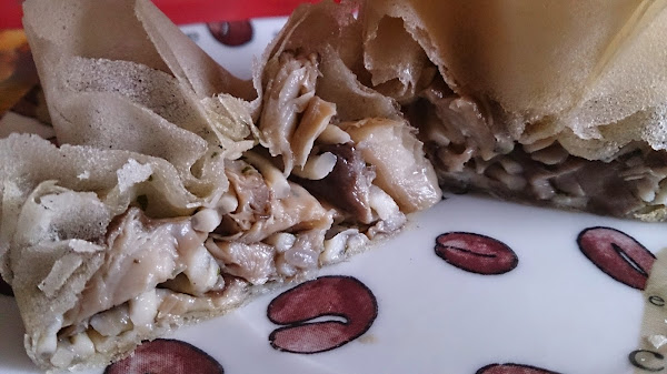 Poner relleno en mitad de la masa filo y formar un saquito.
