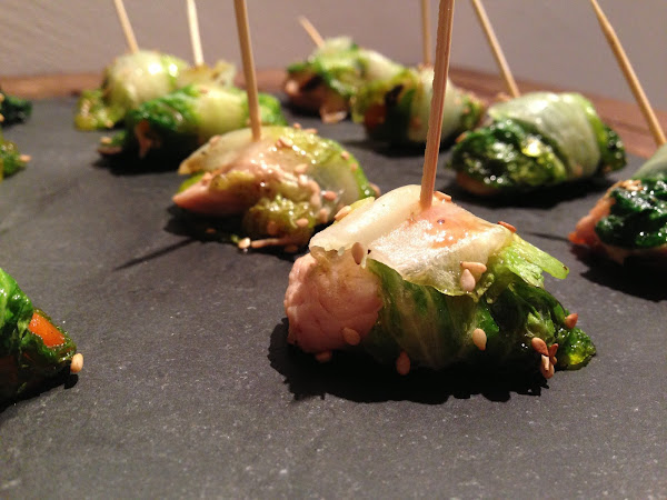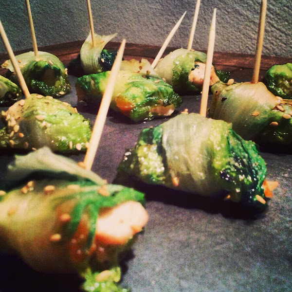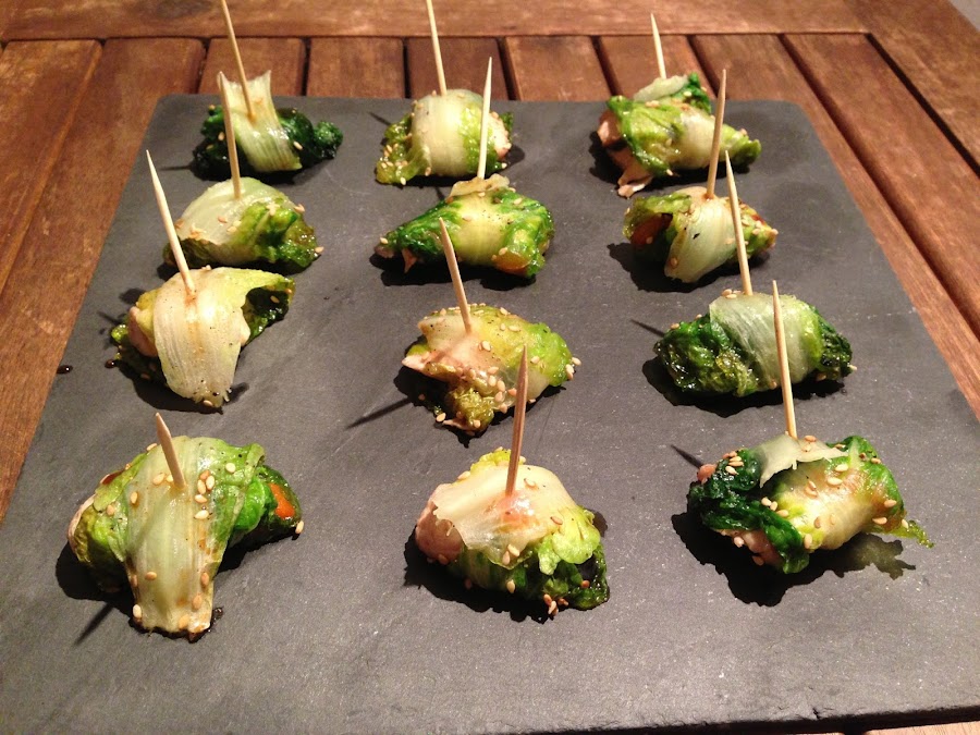 Ahora simplemente deberemos extender de una en una las hojas y con una cuchara podremos colocar un trozo de pollo en cada una, acompañado con un poco de la mezcla de verduras (pondremos más o menos dependiendo de lo grandes que sean las hojas de lechuga que utilicemos).