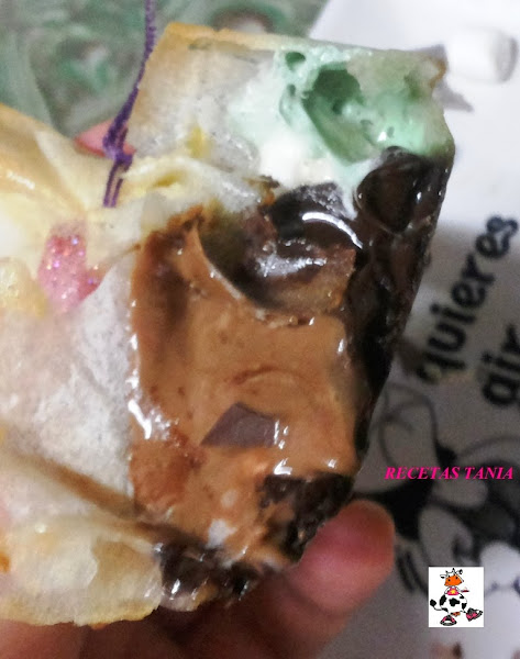 Cortamos la masa brick por la mitad y ponemos un poquito de