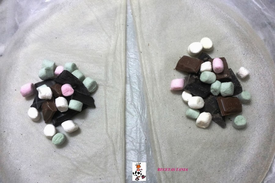 chocolate negro,un poquito de chocolate con leche y unas mini