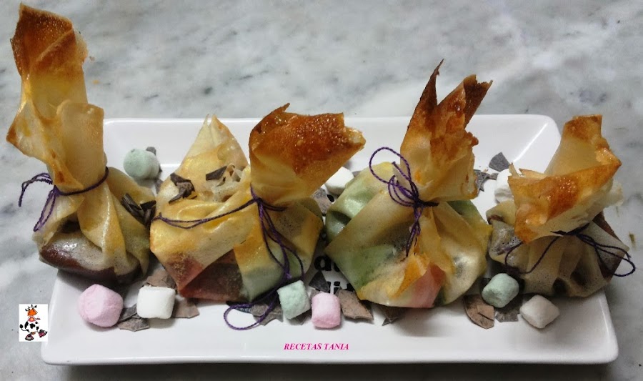 nubes. Cerramos en forma de saquitos y amarramos con hilo,