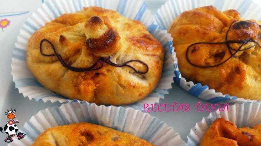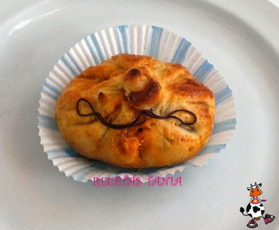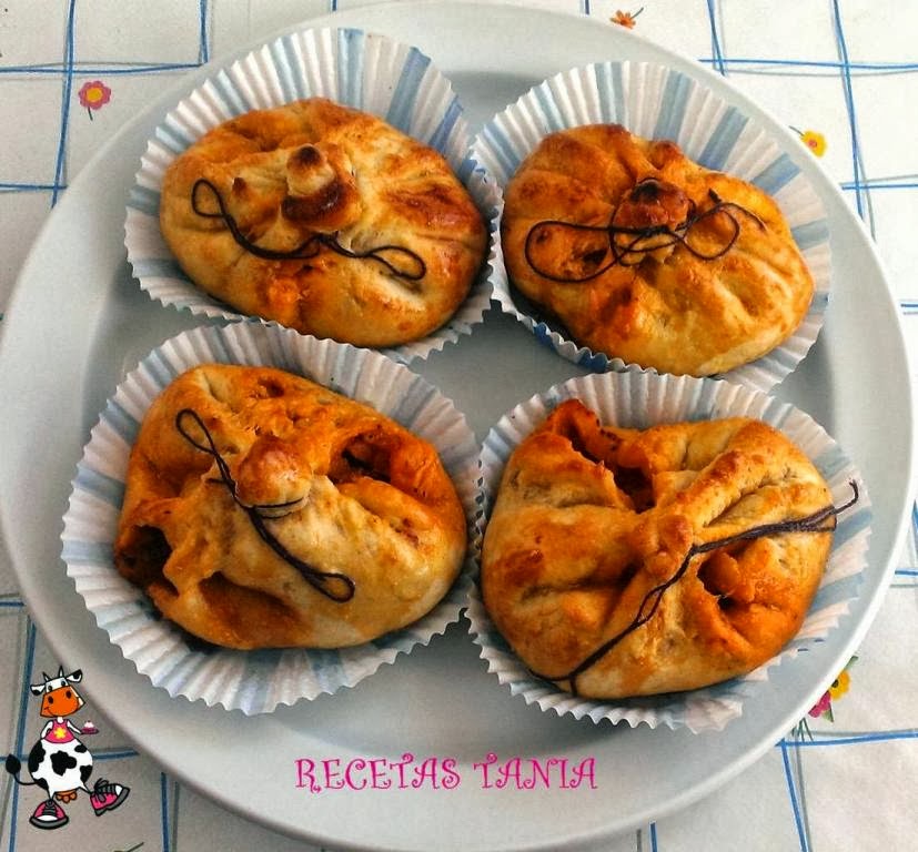 Cortamos en cuadrados la masa quebrada, en el centro ponemos el relleno y cerramos juntando las esquinas y atamos con hilo. En un bol pequeño ponemos la yema del huevo, batimos con un tenedor y pintamos la masa con un pincel.