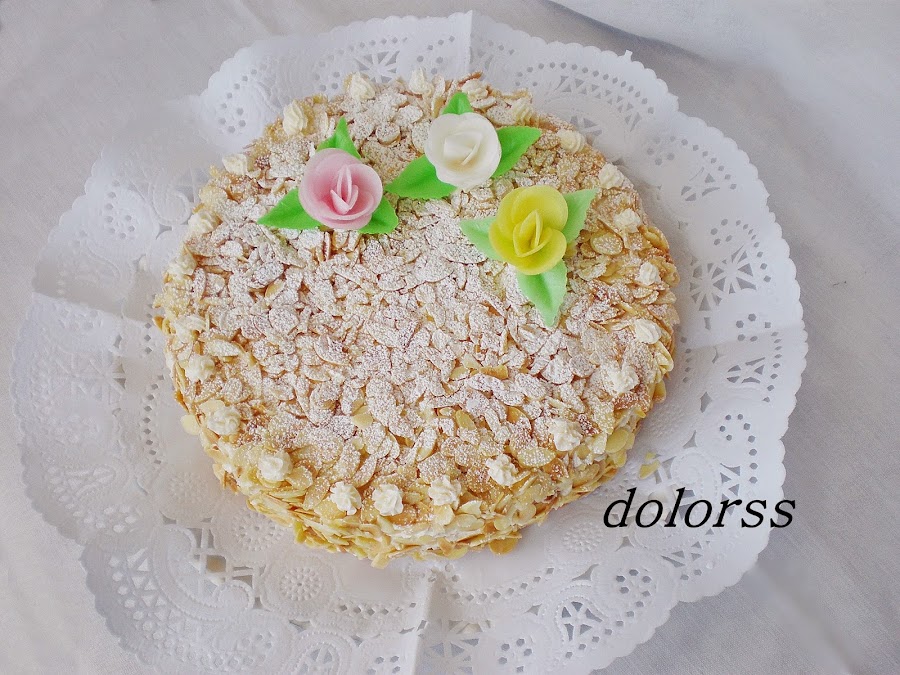 Cubrir con las almendras fileteadas ligeramente tostadas en el horno.