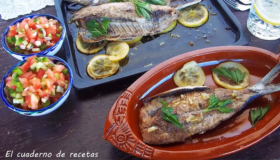 Hoy comí como una reina, con productos de temporada. Esas sardinas que ya empiezan a llegar, esos tomates, con sabor a tomates de verdad, y esa salsa con sabor a limón, que no sabéis cómo he tenido que atarme las manos para no coger la barra de pan y dejar bien limpia la bandeja del horno.