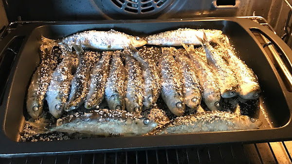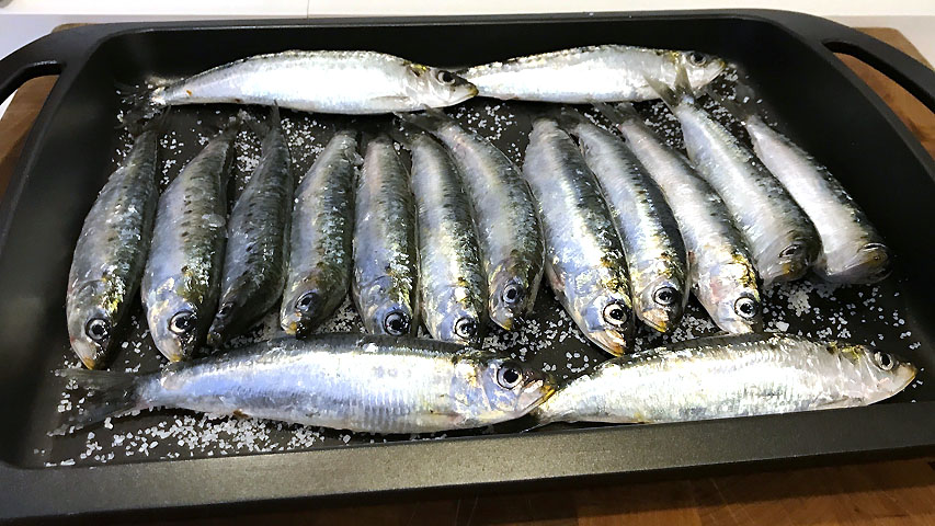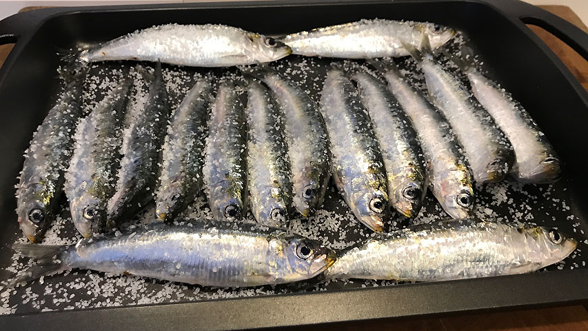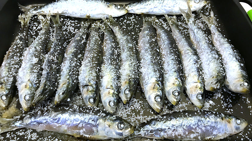 Sazono abundantemente de nuevo por la cara de arriba a todas las sardinas.