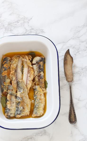 Limpiamos las sardinas, quitándoles las escamas, tripas y cabeza. Las salpimentamos, las pasamos por harina (sacudir para retirar el exceso de harina) y freímos en abundante aceite. Las colocamos en papel absorbente, para retirar el exceso de aceite.