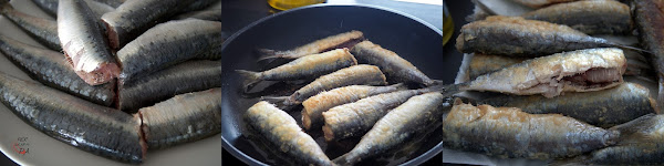 Limpiar las sardinas, eliminando tripa y cabeza. Sazonarlas, enharinarlas ligeramente y freír en aceite muy caliente. Cuando esten doradas retirar y escurrir en papel absorbente. Colocar en una cazuela de barro y reservar.