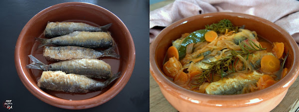 Retirar del fuego y verter sobre las sardinas hasta dejarlas cubiertas cubiertas. Los que tengan prisa lo pueden comer cuando enfríe, pero este es un plato que está mucho mejor al dia siguiente, reposado.