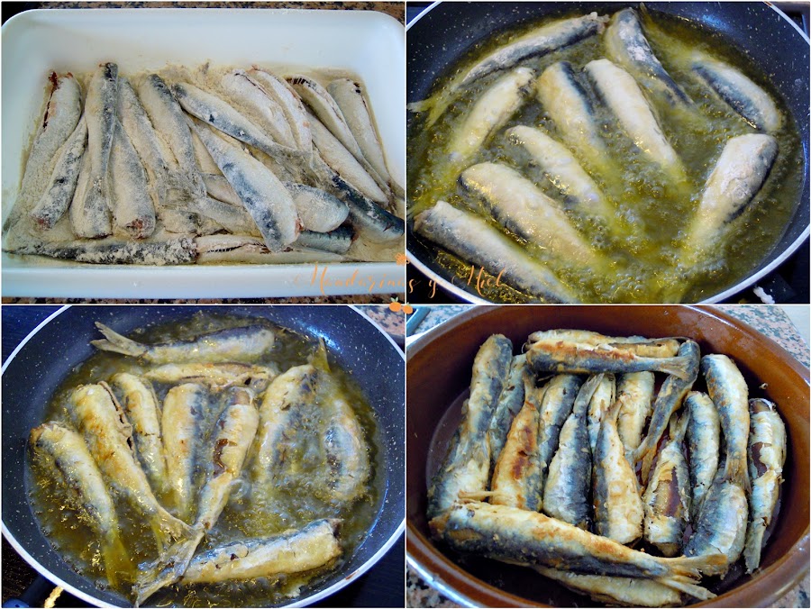 Pasa las sardinas por harina y sofríelas por tandas en abundante aceite caliente.