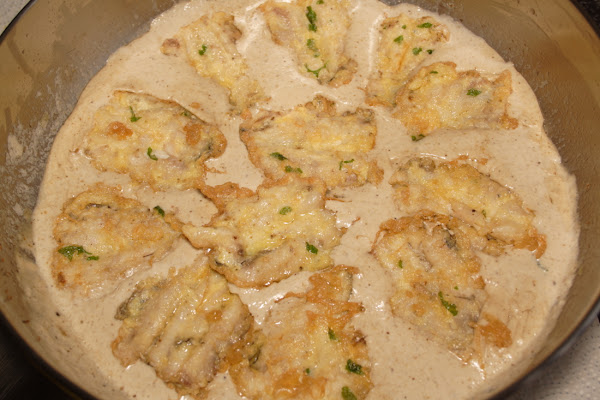 Según se van friendo las pasamos a la salsa. Cuando las tengamos todas ya en la salsa, ponemos la olla a fuego suave, movemos un poco la olla y dejamos en el fuego un par de minutos.