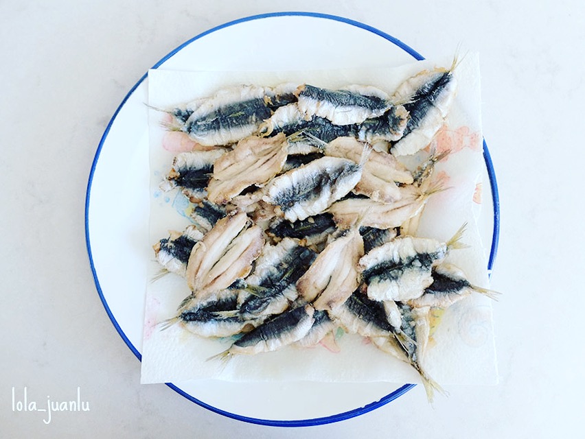 Si os digo la verdad, me relaja limpiar estos pescados. La mecánica de quitar las espinas mientras escucho música me recuerda a esos momentos que pasaba con mi madre en la cocina.