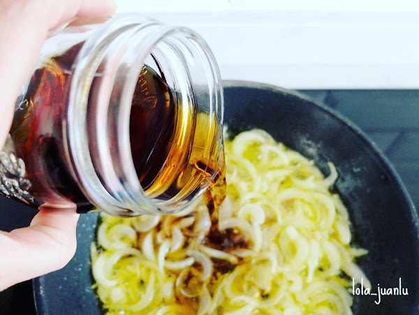 Esta receta es ideal para aumentar el hygge, ya que nos permite escuchar música o desconectar mientras miramos cómo la cebolla se va haciendo a fuego lento y disfrutamos de una copa de vino. Un momento de relax que se lo recomiendo a todo el mundo.