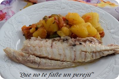 Y ahora, esta receta está dedicada, como no podría ser de otra forma a Immaculada. A ella le gusta la cocina sencilla, sin complicaciones y mucho, un buen pescado de El Rompido. Lo he cocinado muy fácil, las verduras y el pescado por separado, respetando los tiempos de cocción de cada uno. Todo conserva perfectamente su particular sabor. Mucho más rápido, pues mientras el pescado está en el horno, preparamos las verduras.