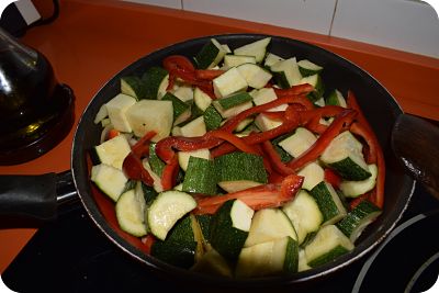 Agrega los calabacines cortados en dados, sin quitarles la piel.