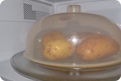 Mientras se hace el pescado, comenamos a preparar las verduras. Lava bien las patatas con la cáscara. Pínchalas con la punta del cuchillo, o un palo de pinchitos... lo que tengas a mano. Ponlas en un plato, tapa con una tapadera apta para microondas y programa máxima potencia, 10 minutos. Comprueba que están tiernas. Si no es así, dales la vuelta y programa unos minutos más, pero poco a poco para no pasarnos en la cocción ( si son grandes, necesitarán cai 10 minutos más, de todas formas cada microondas es un mundo , al igual que los hornos convencionales ). De ser así se arrugan y endurecen. Saca del microondas, espera a que se enfríen, retira la piel y córtalas en dados. Reserva.