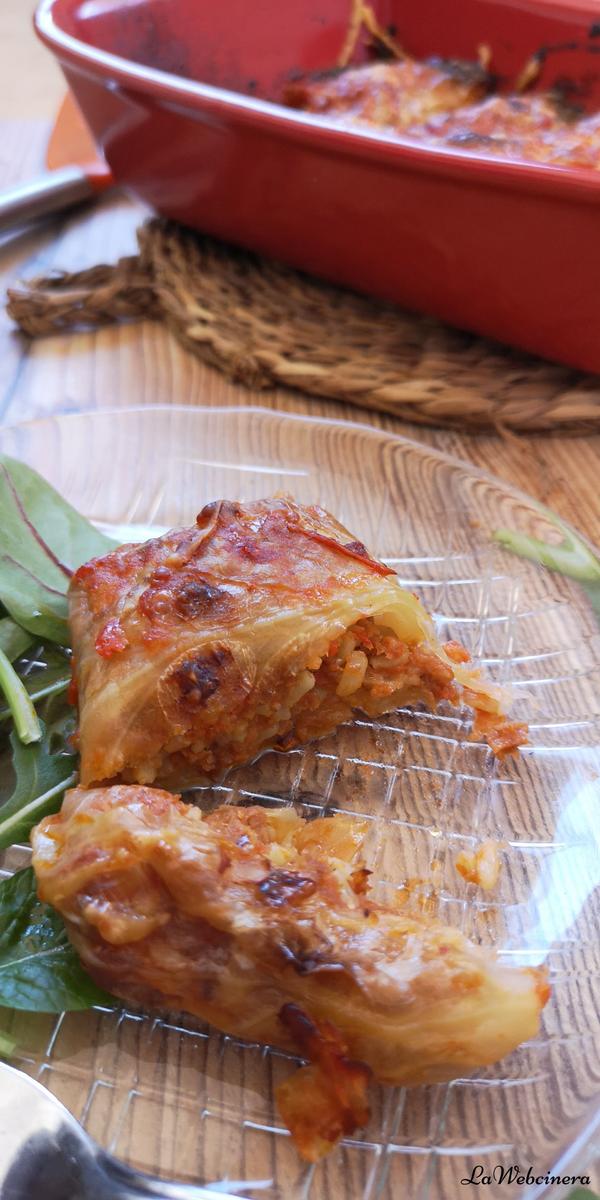El otro día compré media col y la idea era hacer la típica ensalada americana de col y zanahoria (coleslaw), pero terminé preparando Sarma o rollitos de col rellenos.