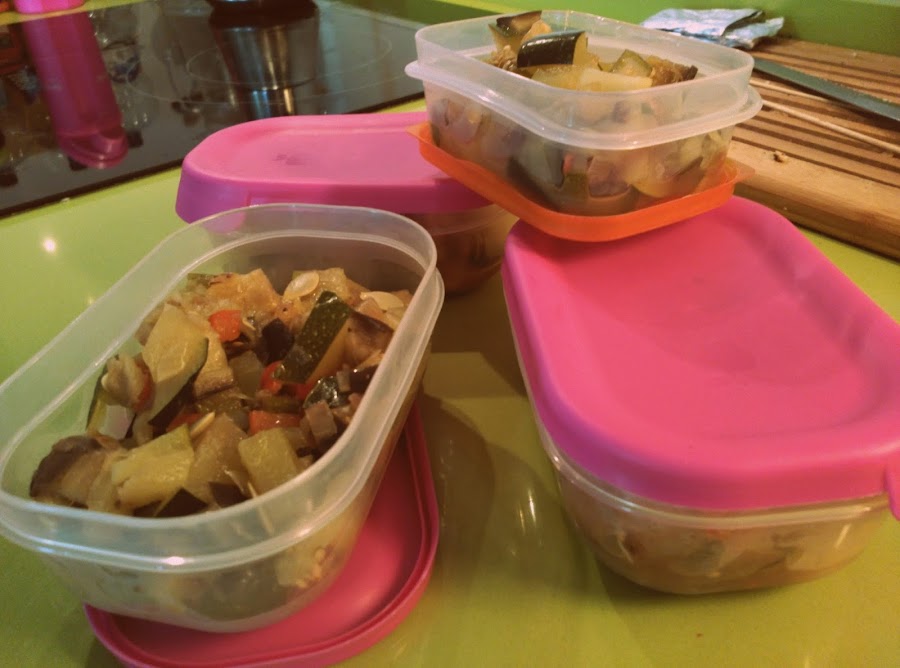 Como veis no le agrego ni sal, ni ningún otro tipo de especie,la idea es tener verduras ya preparadas para poder usar en diferentes recetas sin tener que preparar a cada vez. En la nevera pueden durar unos 3-4 días, y sino las podéis congelar en táperes individuales y sacar cuando os apetezca. Os iré poniendo diferentes recetas donde utilizo este tipo de preparación.