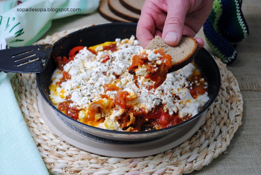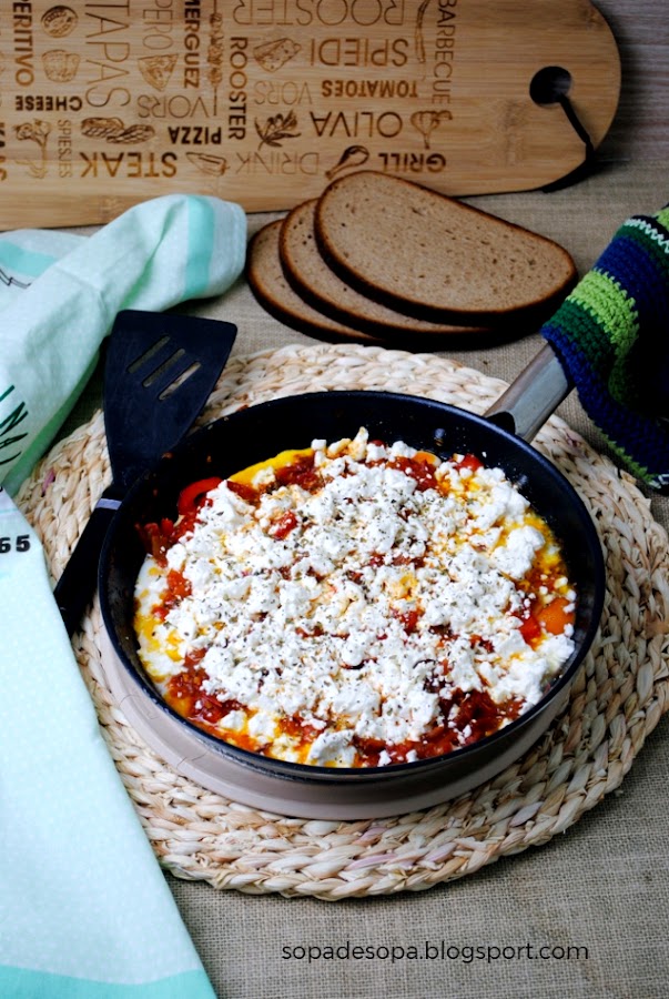 En Grecia, este plato de sartén también se le conoce como tortilla de granjero, aunque como he dicho antes, los huevos no se revuelven, sino que se fríen en la misma sartén y luego se cubren.